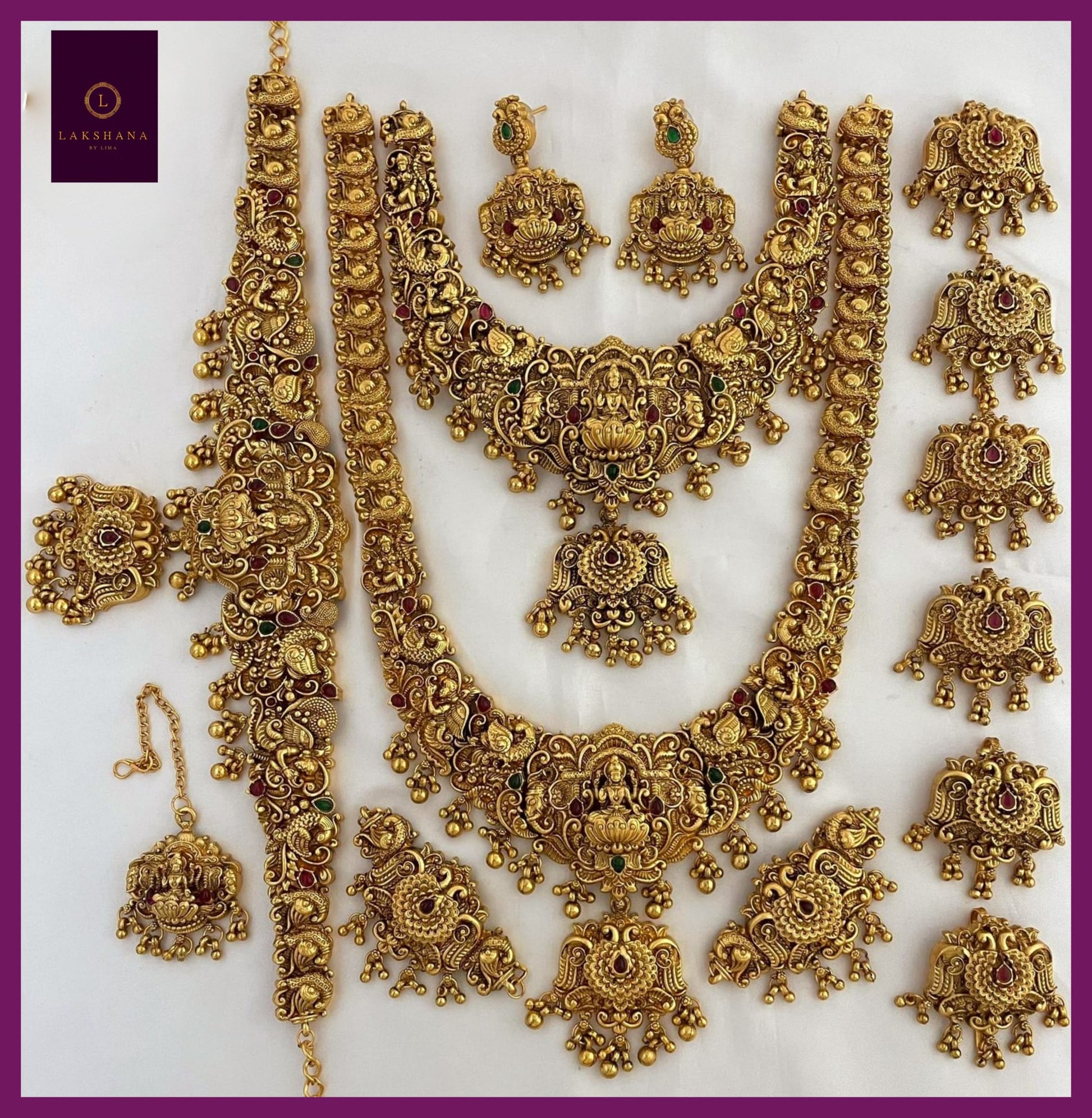 Premium Bridal set! Necklace, Haram, Hip Belt, Mang Tikka, Ear Ring, Armlet and Hair Accessories